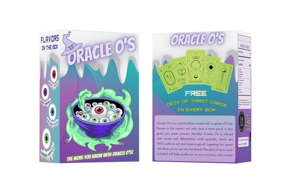 Introducing Oracle O's, a fun and imaginative project that showcases a unique and eye-catching cereal box design concept. Designed to capture the attention of consumers, Oracle O's brings a fresh and playful twist to traditional cereal packaging, making it a standout on the shelves.